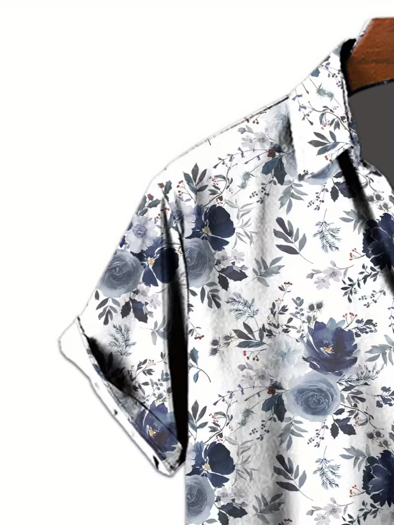 Adopte un style chic et estival avec cette chemise florale pour homme, parfaite pour un look élégant et moderne . Son fond blanc lumineux sublimé par des motifs floraux bleu marine et une pointe de rouge apporte une touche raffinée, idéale pour les beaux jours.